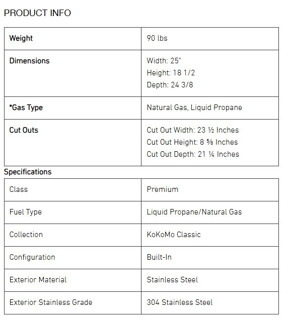 • Build and design your own Outdoor Kitchen with the most versatile outdoor cooking appliances on the market. ALL KOKOMO APPLIANCES include a Lifetime Warranty, and are completely constructed out of 304 Stainless Steel. 304 stainless steel is used around the world due to excellent corrosion resistance. 304 stainless can also withstand corrosion from most oxidizing acids. That durability makes 304 easy to sanitize, and therefore ideal for an outdoor kitchen. Take a close look at the small details that separates us from our competitors. Experience makes a big difference, for over 25 years, we have been taking each and every idea into consideration, and we are constantly making improvements. If you're wanting a long lasting product, with REAL superior features, this is the brand for you.