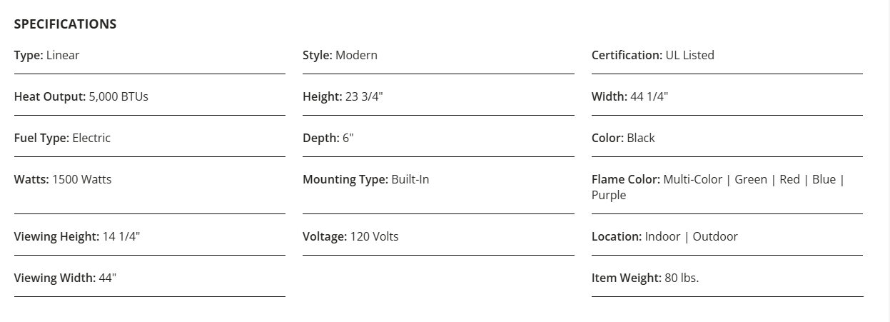 Rated for both indoor and outdoor use, the Modern Flames Landscape Pro Slim Linear Electric Fireplace – 44” can be hardwired into a standard, 120-volt outlet and effortlessly warms your space with its energy-efficient, 5,000-BTU heater. A hidden control panel on the outside of the fireplace allows for quick manual operation, while a full feature remote and WiFi controls let you adjust the flame height, heat output, and lighting from the comfort of your seat.