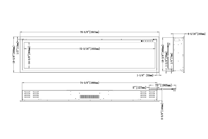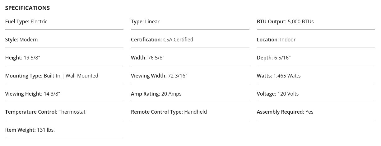 The Modern Flames Orion Slim Electric Fireplace – 76" is equipped with a 5,000-BTU heater that efficiently warms up to 500 square feet. You also have the option to disable the heater and leave the lights and flames running to illuminate your space year-round. Effortlessly control your Orion Slim with the included full-function remote, which individually adjusts the flame pattern and color, accent lighting, ambient sound, and heat output. For even more convenience, you can download the Modern Flames mobile app and control the fireplace using your WiFi-enabled smart device.