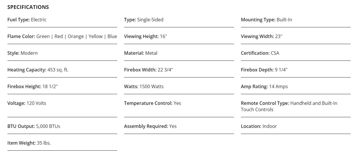 The Modern Flames Redstone Single-Sided Electric Fireplace – 26” plugs into a standard, 120-volt outlet and quickly warms your space with its energy-efficient, 5,000-BTU heater. You can easily slide it into an existing zero-clearance wood burning fireplace or recess it into a wall with a 10-inch depth for a clean, flush-mount finish. Variable and thermostatically controlled heat, a shutoff timer, built-in controls, and a hand-held remote provide maximum comfort and convenient operation.