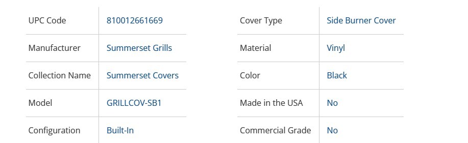 - Protect your investment with the Summerset Cover For Built-In Single Side Burner. This cover features a heavy-duty PVC polyester-lined interior to prevent scratching and resists UV damage, ensuring your side burner stays looking new for years to come.