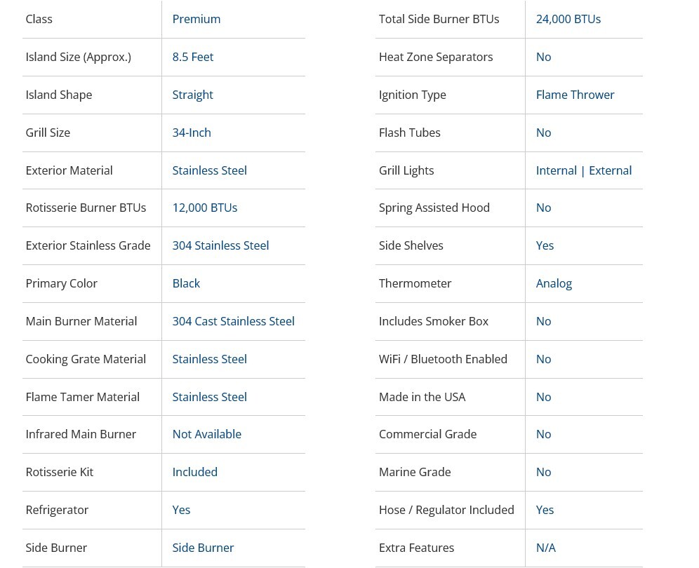DescriptionTurn your outdoor kitchen into the perfect place to cook when you have the Whistler 4-Burner 102 x 28-Inch Gas Grill Island with Infrared Rear Burner, Refrigerator, Double Side Burner, and Rotisserie Kit - Black Stainless. This island comes with a refrigerator, rear infrared burner, rotisserie kit and gas grill all in one. It is fashioned out of high quality 304 stainless steel finished in black and resistant to rust and corrosion. There are high-output interior halogen lights that make it easier for you to cook at night. Stainless steel flame tamers ensure that heat is evenly distributed without the risk of flareups.Whistler Grills is from an established factory in the BBQ grill industry. They believe that quality always comes first, the difference between good and great is in the manufacturing. They use the latest laser cutting technology, which allows them to create the perfect shape for their products, their quality control is assured throughout every step of the manufacturing process. They aim to provide the best quality barbecue grills, with the most competitive prices in the market. They offer Premium quality and innovation at an affordable price, that’s their advantage.All dimensions below are measured in inches and represent the product when fully assembled.Width102"Depth27.6"Height35.5"
