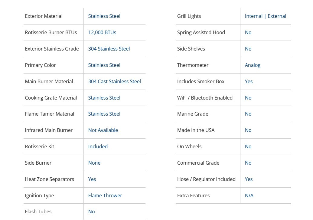 - Manufactured of premium 304 stainless steel and backed with a limited lifetime warranty to assure you have a lifetime of grilling satisfaction