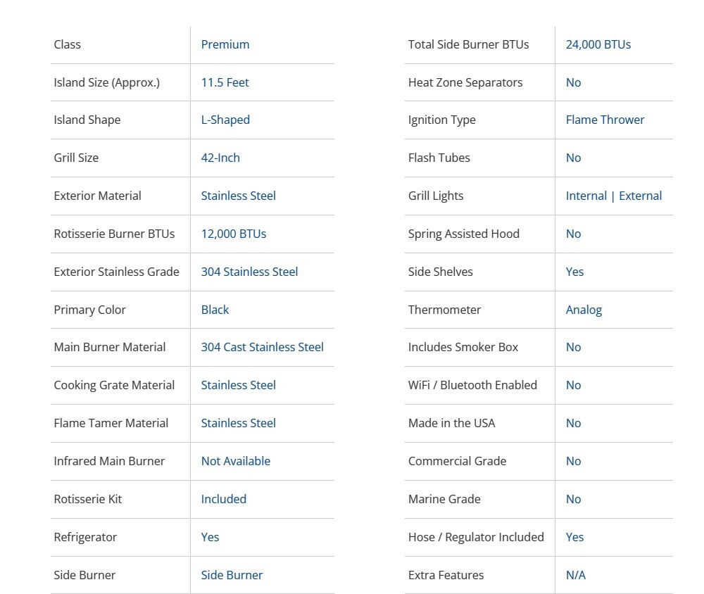 - This outdoor kitchen side burner is equipped with a heavy duty 304 stainless steel grate, 2 cast brass burners (total 24,000 BTUs)